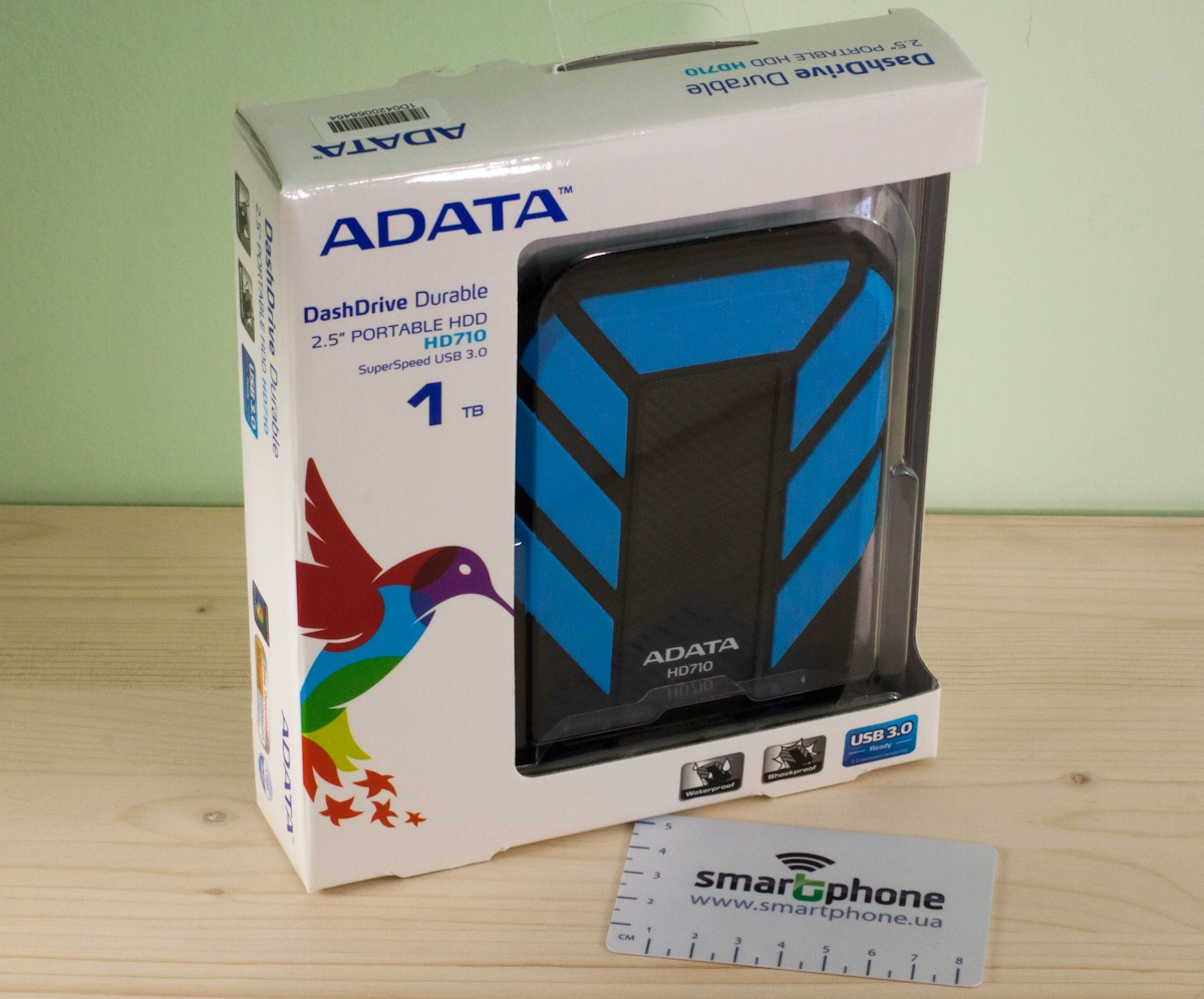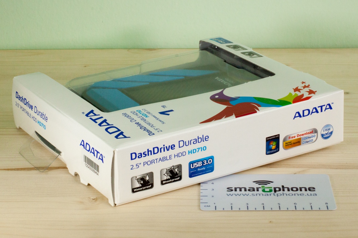 Обзор и тестирование защищенного накопителя ADATA DashDrive Durable HD710 (1 ТБ)Внешний жесткий диск с интерфейсом USB 3.0, элегантным дизайном, хорошими скоростями записи и считывания информации и что самое интересное, защитой по американскому стандарту MIL-STD-810F и международному IEC529 IPX7. Упаковка и комплект поставки