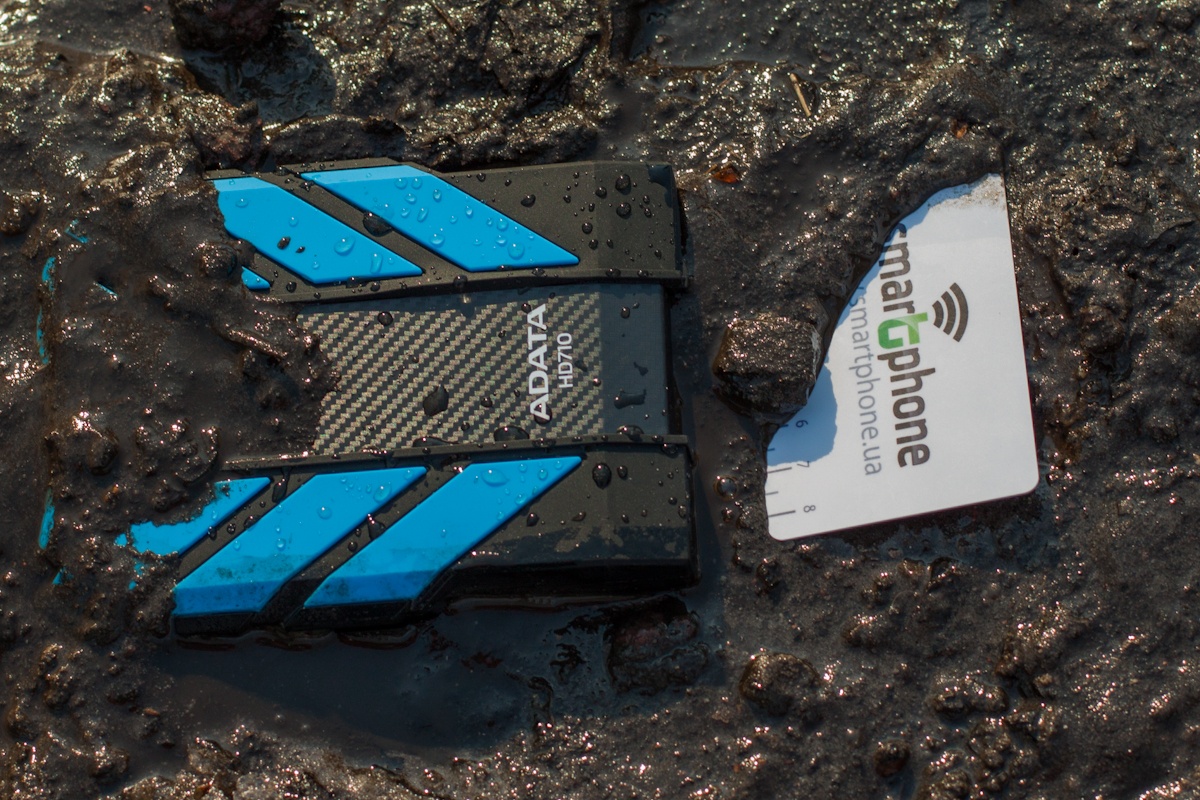 Разумеется, я не ставил своей задачей провести массу тестов на падение, намокание и погружение, которым подвергал устройство производитель, но во время тестирования успел вдоволь «искупать» его в грязи, луже и даже под краником с проточной водой. Рад отметить, DashDrive Durable HD710 по итогам всех «лишений» не то что не перестал работать, но и не показал никаких сбоев, пусть даже незначительных, что, разумеется, приятно.