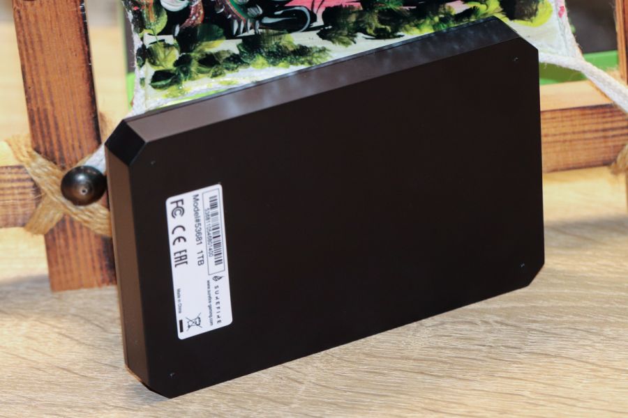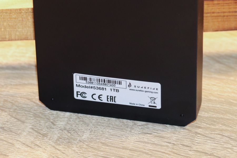 Использованные материалы и качество сборки корпуса Корпус GX3 Gaming Hard Drive (1TБ) пластиковый. Нижняя его часть, а также “боковушки” – один цельный кусок материала, тогда как верхняя словно “посажена” на основной корпус. За материал фиксации не уточняется, но, скорее всего речь о специальных пазах плюс, конечно же, машинной сборке корпуса в единую конструкцию. Это очень надежный формат, который не является разборным для пользователя. Из металлического снаружи лишь окантовка порта USB. Конечно же, без металла внутри также не обошлось, но цели разобрать корпус и посмотреть «что да как там» мы не ставили. Впрочем, судя по весу, который для руки фактически не ощутим (см. таблицу выше), производитель свел наличие этого благородного материала к минимуму. Что же касается пластика, он достойного качества – даже существенного сжатия на практике оказалось недостаточно для того, чтобы сколько-нибудь прогнуть панель. А вот ронять диск мы настоятельно не рекомендуем – все-таки производитель не позиционирует его в роли носителя с защитой от последствий при падении. Дизайн/подсветка Вам понравится внешность GX3 Gaming Hard Drive (1TБ) – и намека на скуку или однообразие. Есть первоклассная подсветка, которая хотя и в некоторой мере напоминает таковую у Razer, но вместе с тем, имеет массу индивидуальных черт, в особенности, что касается стилистики. Но, как говорят, лучше раз увидеть, чем 10 раз прочесть, а потому смотрим работу подсветки на видео ниже. К сказанному выше стоит добавить еще и первоклассный узор на передней панели + яркую звезду здесь же. Сказать, что все это вместе выглядит классно – это не сказать ничего. Этот с позволения говоря, «тандем» с точки зрения дизайна превосходно сольется с внешностью любого игрового ноутбука/ПК либо консоли, поддерживающей подключение внешнего носителя. Поверьте – конечный результат стоит внимания даже весьма требовательного к таким «вещам» пользователя. Версии с памятью SureFire GX3 Gaming Hard Drive доступен в версиях с памятью 512 ГБ, 1ТБ и 2ТБ. У нас в редакции побывала вторая из отмеченных модификаций. Функциональные элементы и информационные метки В этом плане ничего сложного. На панели сверху, как мы уже говорили ранее, находится крутой светодиод с разноцветной подсветкой, чуть ниже которого - не менее эффектно смотрящаяся звезда. Этот дуэт – главная декоративная отличительная черта данной модели носителя. Посмотрите видео выше – у производителя получилось ну очень здорово. На одну из боковых граней вынесли порт USB. Наконец, по периметру сзади миниатюрные пластиковые ножки. Кроме того, здесь же находится небольшая наклейка с различными техническими данными: сноской на объем диска, маркировкой, данными о стране-производителе, а также адресом глобального сайта бренда. Тестовый стенд Для тестирования скоростей SureFire GX3 Gaming Hard Drive я выбрал ноутбук от ASUS, обладающий следующей тестовой конфигурацией “под капотом”:
