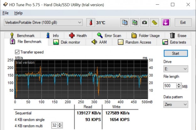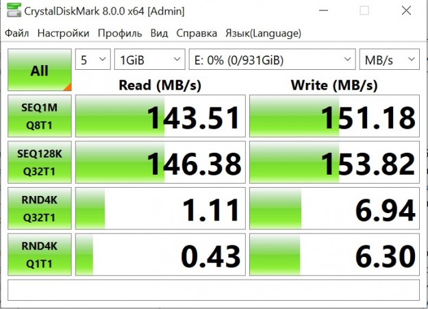 В качестве программной платформы “на борту” Windows 10 домашняя версия. Скорости Производитель декларирует скорости до 140 МБ/c. Реальные цифры, как видим, даже больше.