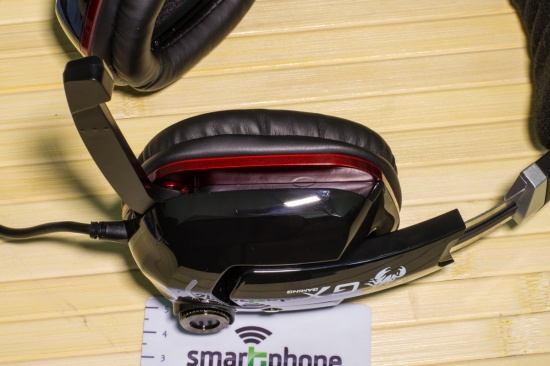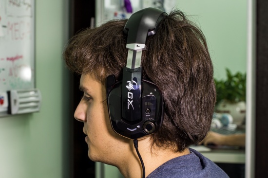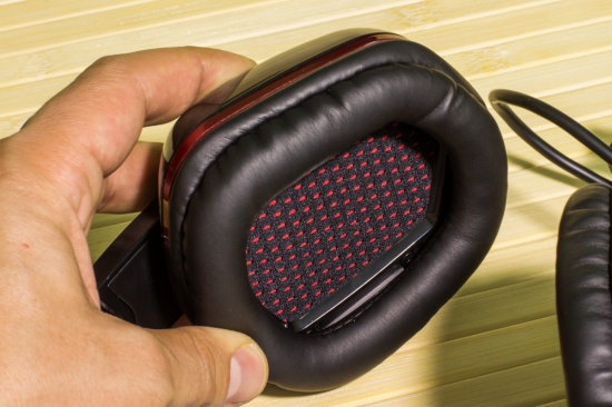 С расположением HS-G700V на голове пользователя также никаких проблем. Благодаря немаленьким размерам чашек они совершенно не сдавливают уши, а жестковатое на первый взгляд оголовье, на самом деле таковым не является из-за массивной подкладки на внутренней его части.