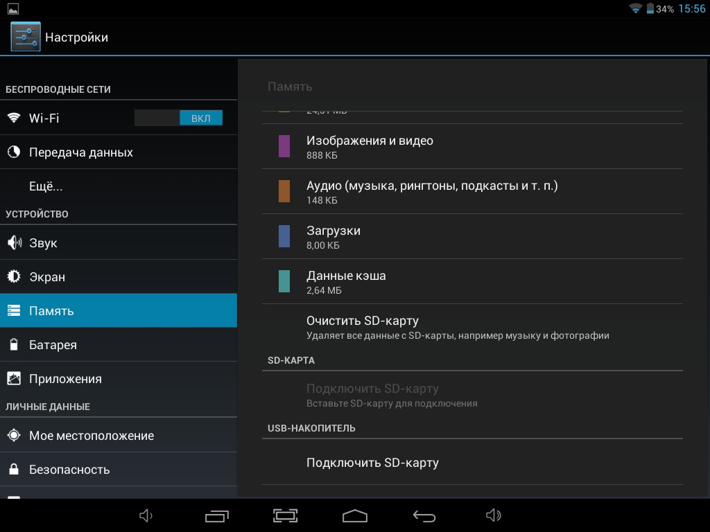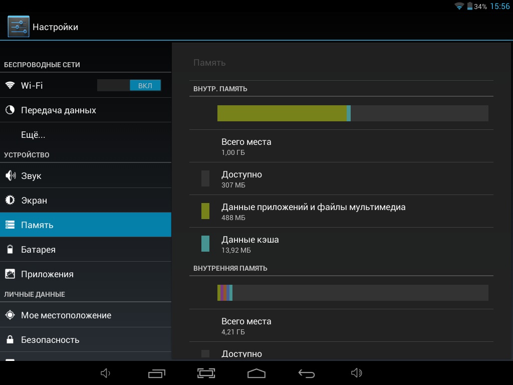 «На борту» ImPAD 2313 8 ГБ встроенной памяти. Пользователю из этого объема доступно немногим больше 5 ГБ: 4,21 ГБ - «хранилище» данных и еще 1 ГБ выделено для установки приложений.