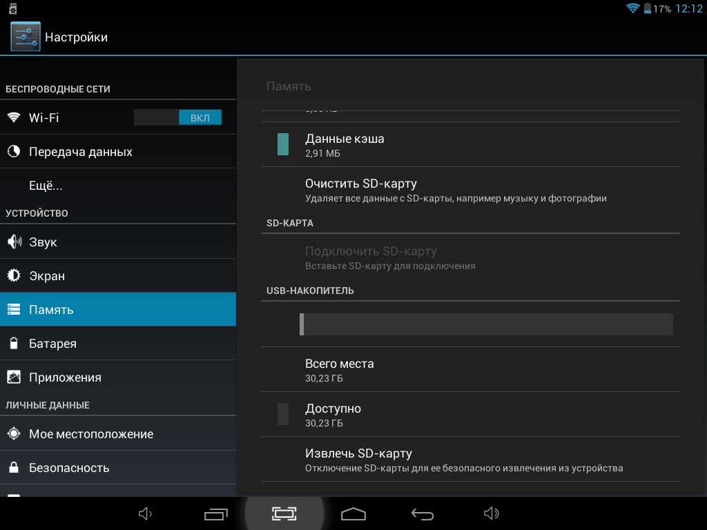 Расширение реализовано за счет карт памяти microSD до 32 ГБ. Кроме того, имеется возможность подключить USB-накопитель. Да, внешний HDD распознан не был, но с решением, основанным на flash-памяти, система работала без проблем.