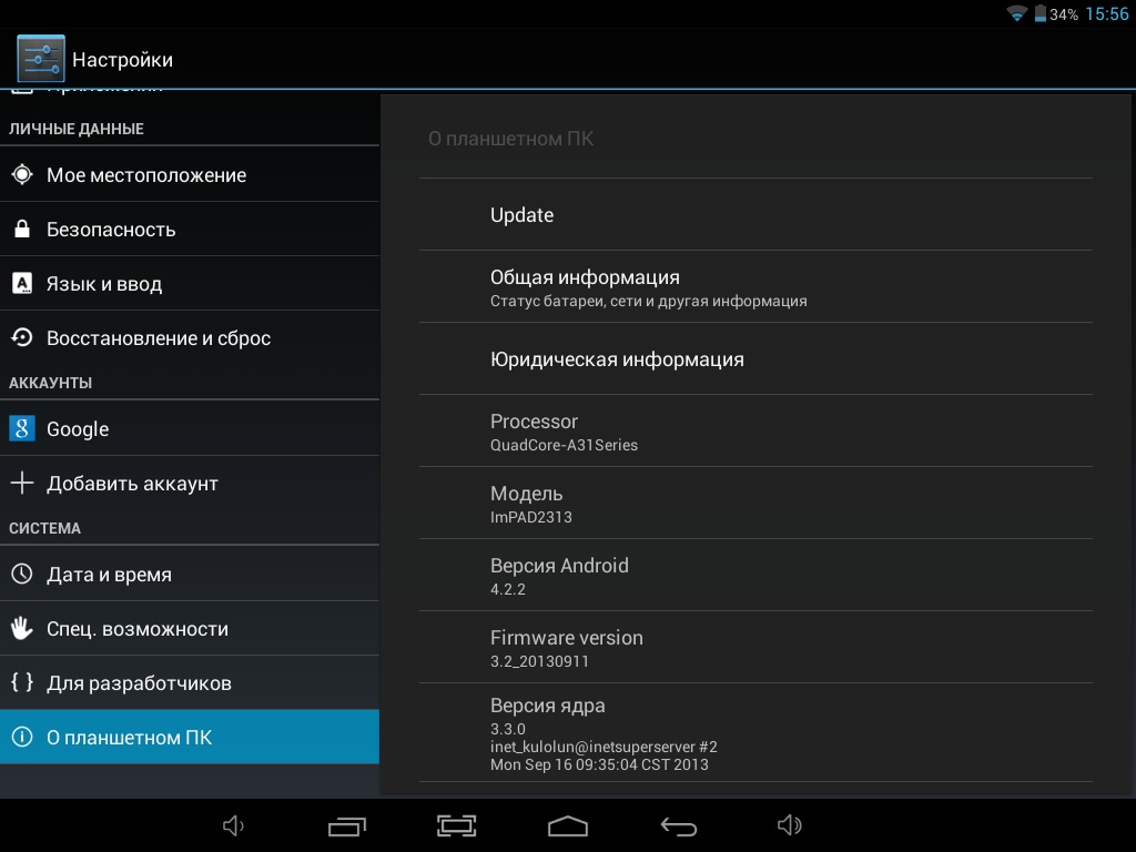 Работает планшет под управлением операционной системы Android 4.2.2. Об обновлении до более актуального релиза ОС на данный момент официальной информации нет, однако, на мой взгляд, оно маловероятно.