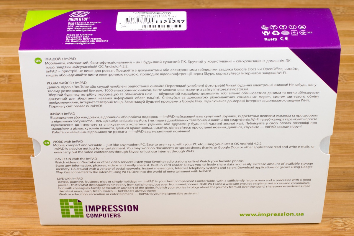 Обзор Impression ImPAD 2313 - «металлический стиляга»!Симпатичный планшет с «железом», возможностей которого достаточно для повседневного пользования. Кроме того, здесь много металла в корпусе, IPS-дисплей, поддержка спецификации USB OTG и многое другое. Цена вопроса - $128. Стоит ли он внимания пользователя!? Об этом далее. Лень читать текстовый обзор? Смотрите видео-обзор...Упаковка и комплект поставки