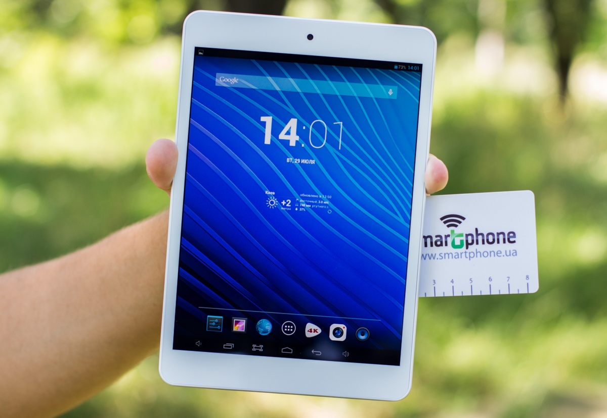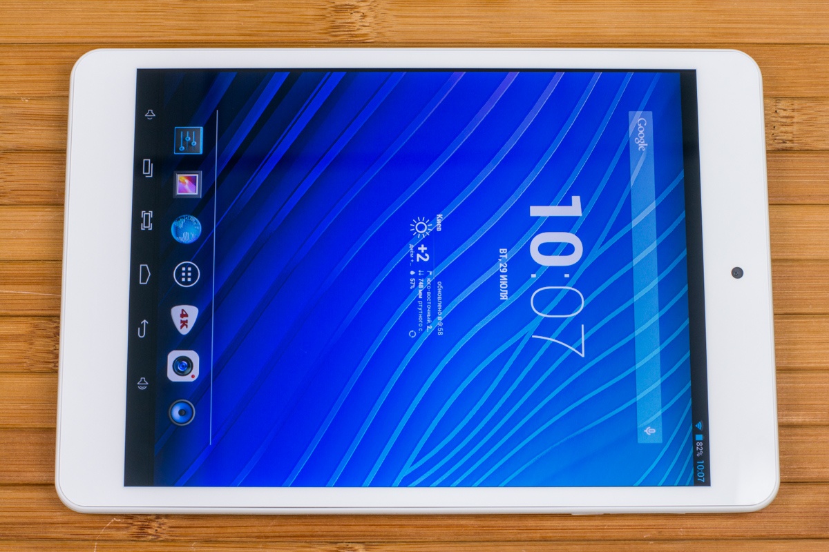 Планшет обладает 7,85-дюймовым дисплеем. Официально заявленное разрешение - 768х1024 точки, однако фактическое немного меньше - 720х1024. Небольшая «полоска» отдана под расположение сенсорных кнопок.
