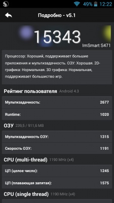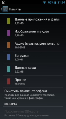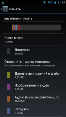 Официально в ImSMART S471 предусмотрено 4 ГБ встроенной памяти. Тем не менее, на практике пользователю доступно немногим больше двух – остальное «отбирает» система.