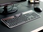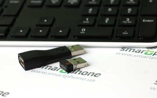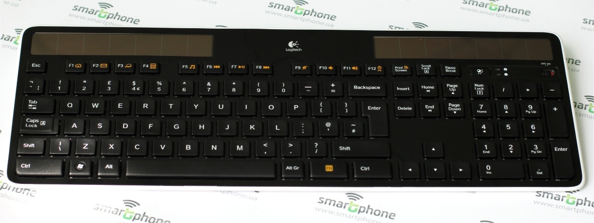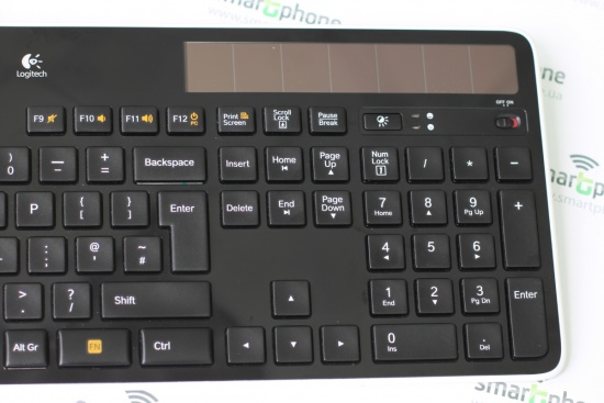Кнопки приятные, во время работы имеют четкий ход, и практически бесшумные, что мне вообще очень нравится в клавиатурах. Клавиши низкие, расположены друг от друга на комфортном для пользования расстоянии. При быстром наборе двойное или случайное нажатие практически отсутствует. Всего модель K750 имеет 104 клавиши, включая «горячие». Над цифровым блоком расположены кнопки переключения питания клавиатуры, а также индикатор состояния заряда аккумулятора. Если заряд находится на достаточном уровне, то загорится “смайлик”. Подключение к устройствамБеспроводная клавиатура Logitech Wireless Solar Keyboard K750 подключается к базовым устройствам через радио интерфейс. Logitech Unifying receiver, идущий в комплекте, подключается к USB порту базового устройства. Размер адаптера не более 2 см. Он работает на частоте 2,4 ГГц и может одновременно работать с шестью устройствами Logitech. Дополнительно набор комплектуется USB удлинителем, длиной чуть более 5 см. В инструкции к клавиатуре написано, что она может работать под различными версиями операционной системы Windows прямо из коробки. Однако мы проверили ее и на Ubuntu 11.10. Никаких проблем с работоспособностью рассматриваемого аксессуара не произошло и здесь. ВыводыВ итоге имеем уникальное автономное устройство без проводов и заменяемых батарей. Кроме того удобное для работы, красивое и использующее для своей работы экологически чистую по происхождению энергию. По нашему мнению, даже цена в 650-700 грн вполне оправдывает возможности данного устройства. Плюсы