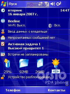 Помимо стандартных программ и апплетов, предустановленных на любом устройстве, работающем под управлением Microsoft Windows Mobile 5.0 Phone Edition, в Orsio n725 присутствует несколько дополнительных приложений заслуживающих отдельного внимания.