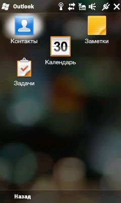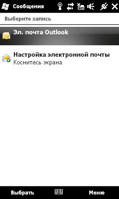 В подпункте «Сообщения» пользователь получает возможность работать с менеджерами SMS и MMS приложений. Все манипуляции, связанные с настройками работы менеджеров достаточно понятны, каких-либо особых навыков для работы с ними не требуется. В следующем разделе меню «Электронная почта» расположена мобильная версия клиента Outlook, а также традиционная версия мобильного клиента электронной почты.