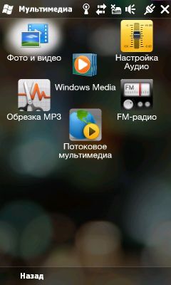 В разделе «Мультимедиа» реализованы приложения «Настройка аудио», Windows Media, «Обрезка МР3», FM-приемник, а также «Потоковое видео». Все настройки приложений показаны на иллюстрациях ниже. «Уникальные приложения»В HTC HD2 реализовано приложения, которые на сегодня можно называть «уникальными».
