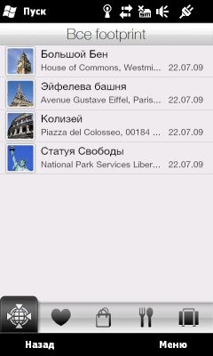К таким, прежде всего, можно отнести приложение Footprints. При помощи данного приложения можно создавать нечто вроде хроники из жизни пользователя, периодически сохраняя в памяти коммуникатора так называемые «Электронные открытки». Во время создания фотографии в меню этого приложения пользователь может добавить к снимку небольшое текстовое сопровождение, голосовую заметку, а также GPS координаты места, в котором был создан конкретный фотоснимок.
