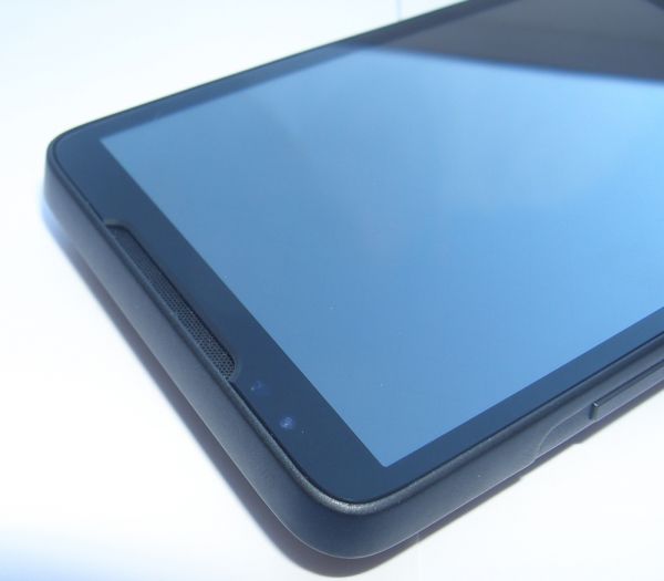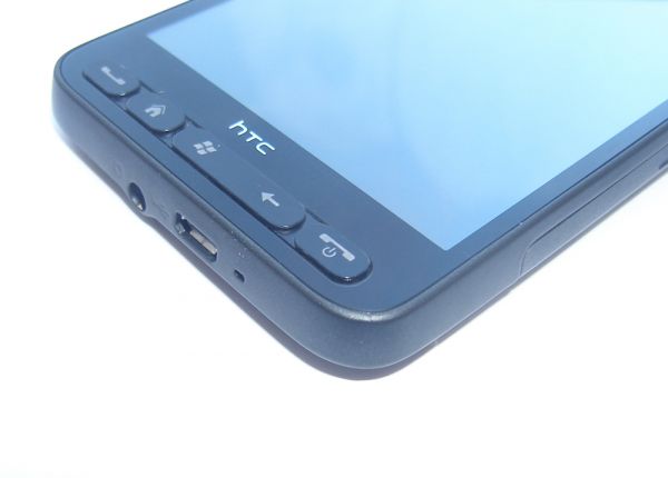 Дисплей занимает практически всю переднюю панель. В HTC HD2 он глянцевый, а потому подвержен маранию. Над дисплеем расположена прорезь коммуникационного динамика. Слева от него находится глазок фронтальной камеры, а также датчик освещенности.