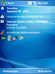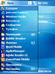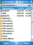 Самым желанным нововведением в HTC P4350 является, несомненно, выдвижная QWERTY-клавиатура. В отличие от HTC TyTN выдвижной механизм оснащен доводкой и довольно-таки качественной – люфта практически нет. Процесс сдвигания клавиатуры можно сопроводить проигрыванием одного из трех аудиофайлов. Открывается она, кстати, сдвигаясь не влево, как в TyTN, а вправо. Такое новшество показалось более удобным для выдвигания клавиатуры правой рукой. Клавиатура также прошла через ряд доработок – теперь в ней появились световые индикаторы включенного режима Cap и Fn, а также подсветка всех клавиш, что позволяет комфортно работать с клавиатурой даже в темноте. Подсвечиваются также и кнопки управления на лицевой стороне корпуса. С помощью клавиатуры можно управлять курсором, в ней также продублированы контекстные клавиши меню и кнопка OK. МенюОпишем некоторые особенности программной начинки P4350. При этом останавливаться на стандартных возможностях Windows Mobile 5.0 мы не будем. Скажем, правда, что вследствие слабого процессора без нужды заходить через проводник в папку Windows не рекомендуется, если конечно у вас нет доброй минуты свободного времени – примерно столько уходит на индексацию всех папок и файлов в этой директории.