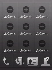 Поворачиваем наш параллелепипед направо и попадаем на следующую грань. Здесь расположены 9 крупных ячеек под кнопки быстрого вызова абонентов, а также кнопки перехода к режиму телефона, просмотру последних звонков, списку контактов или меню удаления ячеек быстрого вызова.