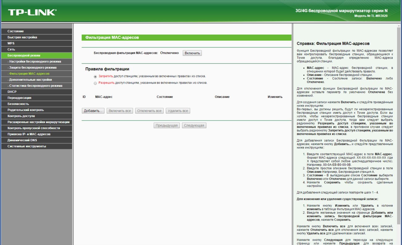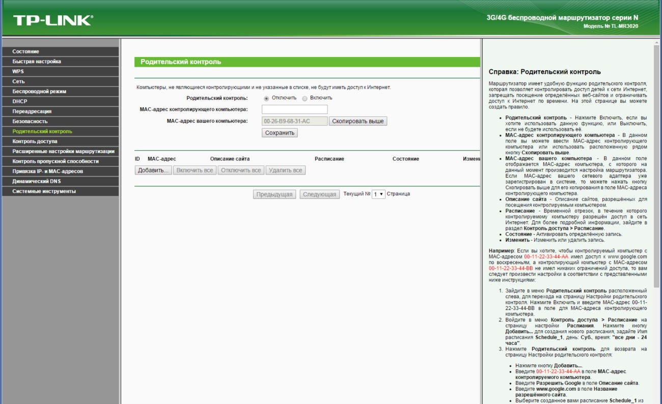 КорпусВнешне TP-LINK TL-MR3020 представляет собой симпатичный и не очень толстый квадрат с закругленными краями. Материал корпуса - глянцевый пластик в комбинации белого и серого цвета. В принципе поверхность маркая, но светлые тона полностью скрываю это от глаз наблюдателей. Все разъемы и элементы управления маршрутизатором разместились на двух соседствующих торцах. Первый примечателен переключателем режимов работы, входом питания и сетевым разъемом. Второй получил только USB-порт для подключения 3G/4G модемов. На лицевой стороне помимо логотипа производителя в ряд выстроились четыре индикатора (питание, интернет, беспроводная сеть, локальная сеть) и отдельная клавиша с подсветкой для сброса (Reset) или включения WPS. Последнее - очень удобный механизм настройки безопасного подключения нажатием всего одной кнопки с режимом шифрования WPA. Корпус легкий, к сборке замечаний абсолютно никаких нет. Маленький вес роутер получил из-за отсутствия в нем встроенной батареи. С одной стороны, это и хорошо, с другой, многим может показаться, что плохо. Скажу лишь, что похожий маршрутизатор со встроенным аккумулятором в линейке бренда есть, и тестируемый образец выигрывает у него как минимум более привлекательным ценником. ПолезностиПомимо основной функции маршрутизатора - возможность раздачи интернета по беспроводной сети Wi-Fi, TP-LINK TL-MR3020 умеет работать и в более интересных режимах. В указанном выше само устройство подключается к глобальной сети через Ethernet кабель, так что локально к роутеру по проводу больше ничего не подключить. Для второго режима работы потребуется вставить в маршрутизатор внешний модем. В этом случае вы можете стать абсолютно мобильными и пользоваться интернетом не только на своем ноутбуке, но и на смартфоне. Причем доступ можно открыть и для всех ваших друзей, отдыхающих или работающих с вами поблизости. С приходом в Украину 3G интернета такой вариант использования тестируемого устройства может быть весь интересным, если, конечно, есть необходимость сэкономить за счет покупки тарифного плана с большим количеством предоплаченного трафика на большую группу пользователей. Стоит сказать, что производитель гарантирует корректную работу роутера более чем со 120 моделями 3G USB-модемов. Кстати, переключение с 3G на WAN в этом роутере происходит автоматически, так что даже при потере проводного канала Интернет будет работать от подключенного модема. Не менее рациональным решением будет взять TL-MR3020 с собой в командировку или отпуск. Наверное, многим встречались отели, где в номере нет беспроводной сети, но есть Ethernet порт. Именно через него и можно организовать беспроводную Wi-Fi сеть со скоростью подключения до 150 Мбит/с. При этом интернет будет не только в вашем ноутбуке, но и в смартфоне, планшете, читалке и других мобильных устройствах. Напоследок стоит сказать и о режиме работы маршрутизатор - клиент WISP. Эта функция полностью оправдает покупку роутера в случае, если, например, в отеле платный интернет и за каждое подключенное по беспроводной сети устройство взымается отдельная плата. Собственная точка доступа модели TL-MR3020 при этом продолжает работать в привычном режиме, а к глобальной сети маршрутизатор подключается через платныйWi-Fi. В этом случае доступны и PPPoE, PPTP, L2TP -соединения с провайдером. Панель администратора и первичная наст