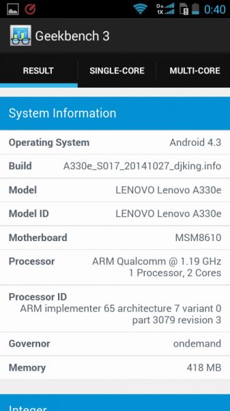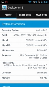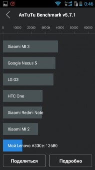 Обзор Lenovo A330E: GSM и CDMA в одном смартфонеНа первый взгляд обычный бюджетный Android-смартфон со спокойным дизайном, 5-дюймовым экраном и 2-ядерным процессором от Qualcomm. Однако в этой модели стоимостью 1999 грн есть кое-что уникальное - поддержка сразу двух стандартов связи: CDMA EVDO Rev.A и GSM. Подробнее об этом и других особенностях Lenovo A330E далее в обзоре. Лень читать текстовый обзор? Смотрите видео-обзор...Комплект поставкиLenovo A330E поставляется в компактной картонной коробке вместе с кабелем microUSB-USB, адаптером зарядного устройства, инструкцией пользователя и гарантийным талоном. В общем, стандартная комплектация бюджетного смартфона, ничего лишнего. Дизайн и функциональные элементыПо части дизайна тестируемый аппарат мало чем отличается от других бюджетных смартфонов, а вот в плане эргономичности и практичности в использовании он получился удачным. Плюс эргономики гаджета в том, что благодаря компактным размерам - 142.5х72.5х9.9 мм, и чуть изогнутой пластиковой тыльной панели с сетчатой текстурой он комфортно лежит в руке, не норовя из нее выскользнуть. Большой палец без проблем дотягивается к кнопке питания и качельки регулировки громкости, которые расположились на правой боковой грани. Среди других элементов отмечу порт microUSB и 3.5 мм аудиоразъем, обустроенные на верхнем торце, а также два слота для SIM-карт стандартного размера и один для карты памяти формата microSD, разместившиеся под съемной крышкой аккумуляторного блока. Кстати, несмотря на съемные элементы конструкции, Lenovo A330E отлично собран – люфты и скрипы отсутствуют. Тыльная крышка плотно прилегает к корпусу и, вероятно, именно поэтому не так легко снимается, как хотелось бы. В ней предусмотрен вырез под мультимедийный динамик и обрамленный металлическим кольцом объектив камеры. Передняя панель примечательна в первую очередь 5-дюймовый экраном и тремя сенсорными кнопками с фирменными пиктограммами. Кроме того, здесь же вверху находится решетка разговорного динамика и датчик приближения, а внизу микрофон. ЭкранВозвращаясь к дисплею смартфона, отмечу, что он выполнен по технологии TN и имеет разрешение 854х480 пикселей. Качеством экран, мягко говоря, не блещет - обращает на себя внимание хорошо заметная пикселизация, отсутствие олеофобного покрытия и датчика освещения, а также ощутимое «выцветание» на солнце. Вместе с тем, есть и плюсы – сенсорный слой распознает два одновременных касания и четко реагирует даже на легкие прикосновения, а небольшое разрешение дает возможность смартфону работать дольше, чем конкуренты с такой же диагональю, но большей плотностью пикселей на дюйм. АккумуляторПоследнему также способствует емкая батарея гаджета на 2000 мАч. Одного полного ее заряда хватает на 6-7 часов просмотра видео формата 720p или же на 4-5 часов игр. Отмечу, что никаких специальных настроек оптимизации системы для увеличения длительность автономной работы в тестируемой модели нет. ПамятьВ распоряжении пользователя Lenovo A330E всего 4 ГБ внутренней памяти, а потому для полноценного использования девайса стоит заранее обзавестись картой памяти формата microSD максимальным объемом до 32 ГБ. Аппаратная начинка и производительностьТак как Lenovo A330E - аппарат начального уровня какими-то особыми техническими параметрами он не обладает. В смартфоне установлен 2-ядерный процессор Qualcomm Snapdragon 200 MSM8610 с тактово