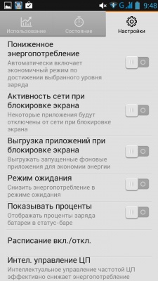 В наличии фирменная система энергосбережения, которую девайс получил с оболочкой Lenovo Loucher.