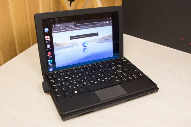 Устройство способно работать в разных режимах. За поддержку ориентации экрана в каждом из них отвечает Lenovo Mode Switcher. Данная программа является дополнением к ОС Windows 10, гарантируя правильное единое либо раздельное отображение информации на экране (в зависимости от предпочтений пользователя). Имеющиеся варианты отображения становятся доступными при активации соответствующей иконки в нижнем правом углу экрана. При всей своей необычности и технической оснащенности ThinkPad X1 Fold имеет определенный недостаток. Он заключается в том, что шарнир не обеспечивает плотного прилегания частей экрана в сложенном виде. Из-за этого в него, теоретически, могут попадать загрязнения, пыль, снижая срок эксплуатации ноутбука. Но эти нюансы сможет выявить только время, а за две недели теста таких проблем у меня не возникло.