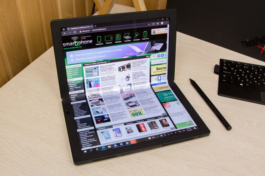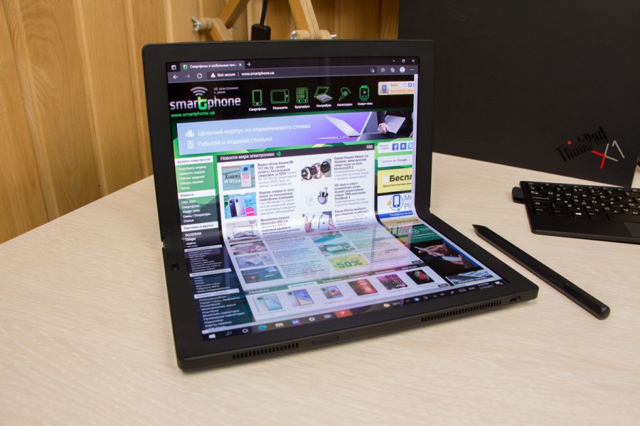 Обзор Lenovo ThinkPad X1 Fold: ноутбук или планшет?!Компании, специализирующиеся на выпуске ПК, планшетов, ноутбуков, постоянно пытаются удивить потенциальных покупателей техническими новинками. К примеру, компания Lenovo выпустила ноутбук, оснащенный гибким экраном. Новинка получила название ThinkPad X1 Fold и в этом обзоре поделимся своими впечатлениями о ее возможностях. Гибкий экран Ключевой особенностью нового ноутбука стал гибкий экран, реализованный за счет специального шарнирного механизма. По заверениям производителя он способен без проблем выдерживать большое количество открытий/закрытий, а также высокие нагрузки.
