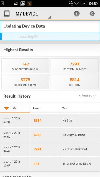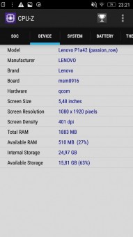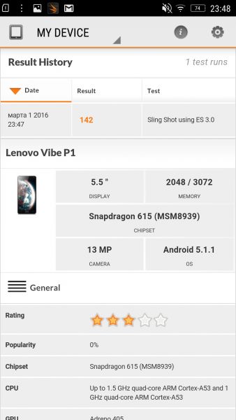 Обзор Lenovo Vibe P1 – смартфон-«долгожитель» ломает стереотипыМеталлический фаблет Lenovo Vibe P1 – это тот редкий случай, когда ради емкой батареи в 5000 мАч и возможности подзаряжать другие устройства производитель не пожертвовал ни привлекательным дизайном аппарата, ни производительным железом, ни даже средствами защиты информации, ранее доступными зачастую флагманам. Словом, возможности этого «долгожителя» при ценнике в $295 выглядят, на мой взгляд, весьма заманчиво. Однако это все теория, что можно получить на практике, расскажем далее в обзоре. Лень читать текстовый обзор? Смотрите видео-обзор...Комплект поставкиКомплектация Vibe P1 оказалась даже богаче, чем я ожидала. Помимо самого смартфона, кабеля microUSB-USB, адаптера питания и руководства пользователя в компактной коробке из плотного картона нашлось место простеньким наушникам-гарнитуре и даже OTG-переходнику. Последний необходим как для подключения к смартфону внешнего USB-накопителя, так и для зарядки от него других гаджетов. К слову, батарею iPhone 5 с 36% до 100% мне удалось, например, зарядить за 2 часа, сам Vibe P1 при этом потерял лишь 15% заряда. Дизайн и функциональные элементыВнешность Vibe P1 не просто интересна – оно ломает стереотипы о том, что смартфон с мощным аккумулятором зачастую выглядит достаточно грубо. Хотя не буду отрицать, что большая батарея и полностью металлический корпус P1 все такие отразились на его весе и габаритах - 75.6 x 4.6-9.9 x 152.9 мм при массе 187 грамм. Однако, даже несмотря на внушительные размеры, благодаря «лодочной» форме металлического корпуса, сужающейся к боковым торцам, гаджет выглядит аккуратно и солидно. Плюс ко всему хорошо «сидит» в ладони, просто для управления иногда приходится подключать вторую руку или включать режим «Микроэкрана», активация которого уменьшает рабочий стол. Собран смартфон отлично - ничего не скрипит и не люфтит. Вместе с тем, ронять его и носить вблизи с острыми предметами крайне не рекомендую, на корпусе Vibe P1 остаются вмятины и царапины, которые видно гораздо лучше, чем на пластике. Расположение функциональных элементов в целом традиционно. Интерес вызывает лишь отдельная кнопка включения/выключения режима энергосбережения, обустроенная на левой «боковушке». В свою очередь на правом торце традиционно расположена кнопка питания и качелька регулировки громкости, сверху - микрофон шумоподавления и 3.5мм аудио разъем, снизу – порт microUSB и две решетки, скрывающие микрофон и мультимедийный динамик. Из съемных элементов корпуса в Vibe P1 лишь верхняя пластиковая вставка, прячущая слот для двух nanoSIM-карт и отдельный для microSD-карт. Что касается тыльной панели смартфона, то она привлекает внимание довольно крупным объективом 13Мп камеры, логотипом линейки Vibe и двухцветной светодиодной вспышкой. В свою очередь передняя панель гаджета интересна наличием довольно большой механической кнопки «Home» со встроенным сканером отпечатков пальцев, запоминающим до 5 отпечатков и предназначенным для разблокировки устройства. Из прочих элементов на фронтальной части Vibe P1 присутствуют: сенсорные кнопки с регулируемой подсветкой, разговорный динамик, набор датчиков, индикатор событий и фронтальная камера на 5Мп. ДисплейVibe P1 получил 5.5-дюймовый IPS-дисплей с разрешением 1920х1080 точек и плотностью в 401 ppi, так что четкость изображения на нем хорошая, а углы обзора шир