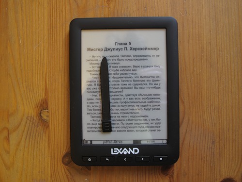 Обзор Lexand LE-116Единственное что есть приятного в Lexand LE-116 - это небольшая цена. На другой чаше весов - крайне сырое программное обеспечение, а также очень блескучий и тупой сенсорный экран. К покупке данный аппарат не рекомендуется. ![]() Если бы дело было только в кривом и недоработанном софте - я бы, наверное, сказал: ну, может, починят когда-нибудь. И будет неплохая машинка. Не супер, конечно, видел я много читалок получше и не очень дороже. Но, по крайней мере, не слишком тормозная, нормальная на вид, с терпимыми кнопками и т.д. Обычная такая e-ink читалка. Но экран... Экран - это ну просто тушите воду, сливайте свет. ![]() Ладно, ладно. Не всё так плохо. Временами книжка достаточно шустрая (в те моменты, когда она не тормозит, а такое случается, увы, регулярно), плюс достаточно приятная внешне (если не обращать внимание на бликующий экран, конечно). И управляющие кнопки у неё не самые плохие.. И формат PDF хорошо поддерживает... существенно лучше всех других форматов (о форматах поподробнее позднее). ![]() Первое знакомство Первое знакомство было несколько необычным. Я как-то привык, что любое электронное устройство попадает в мои лапы с заряженным аккумулятором. Не обязательно на все сто - но - в достаточной мере. А электронные книжки - так и вообще. Они же аккумулятор жрут слабо. И, как правило, умеют отключаться/засыпать и т.д. А тут - приходит посылочка с читалкой, я её открываю, включаю... LE-116 сообщает, что необходимо зарядить аккумулятор и выключается. Делать нечего, втыкаю на ночь в розетку. Утром благополучно включаю книжку, пару минут с ней вожусь. Потом у меня находятся какие-то срочные дела и я откладываю книжку в сторону. Когда через неделю руки до неё снова доходят, она опять оказывается в разряженном состоянии. В общем, не стоит забывать её выключать, если не используете. Сама она отключаться, увы, не умеет - никаких настроек автоотключения нет. ![]() ![]() Экран Экран - это самое больное место электронной книги Lexand LE-116. В принципе, он - вполне нормальный шестидюймовый E-ink. Но блескучий. Очень блескучий. Ну то есть настолько блескучий, что, на самом деле, уже этого одного достаточно для того, чтобы навсегда забыть о покупке данного устройства. Я вообще никогда не считал себя особо привередливым по поводу качества экранов - и данная книга - первая книга на электронных чернилах, которую я не смог долго читать. У меня тупо начинали болеть глаза. Всегда считал своим долгом - если уж пишу про читалку - прочесть на ней хотя бы одно более-менее толстое произведение. Тут - не смог, сдался после пары глав. Экран сенсорный. Ну, точнее, он пытается быть сенсорным. Я его сенсорностью так нормально попользоваться и не смог. Очень уж он тоскливый и неотзывчивый. Что пальцами, что прилагаемым стилусом (очень оригинальная форма стилуса, очень). Нет, то есть иногда он начинает более-менее нормально работать. Но почему-то именно что иногда. Типа - вошёл в "Поиск", безуспешно потыкался минуту в нарисованную на экране клавиатуру, вышел-вошёл - и нормально набрал текст. ![]() Сперва подумал - ну, может, экран откалибровать надо? Пошёл в меню настроек, в калибровку. При калибровке читалка, как обычно, рисует последовательно пять крестиков - четыре по углам и один в центре - и предлагает в них тыкнуть. В первой попытке я застрял на первом крестике - ну не тыкается он, и всё тут, хоть ты тресни. К счастью, п