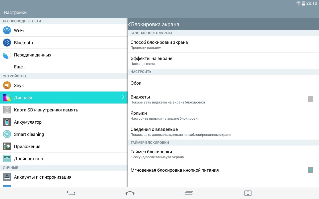 По части настроек в соответствующем подпункте меню есть все, что мы видели в обзоре 7-дюймового LG G Pad 7.0 – переходим, знакомимся. Повторяться здесь, пожалуй, нет совершенно никакого смысла.