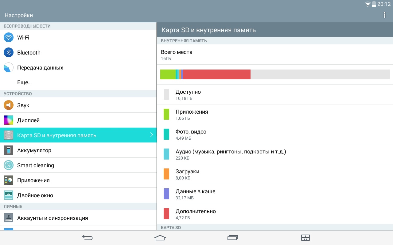 Из 16 ГБ встроенной памяти пользователю доступно немногим больше 10 ГБ.