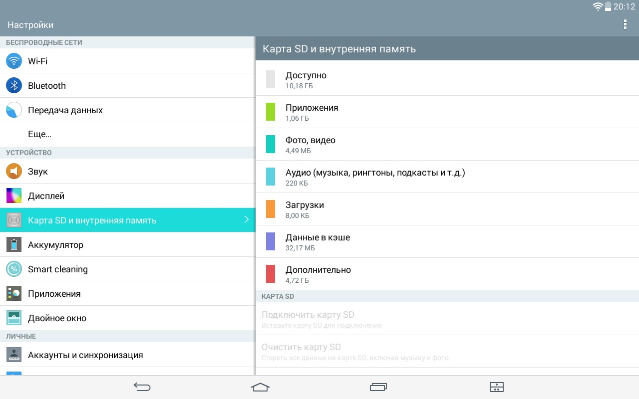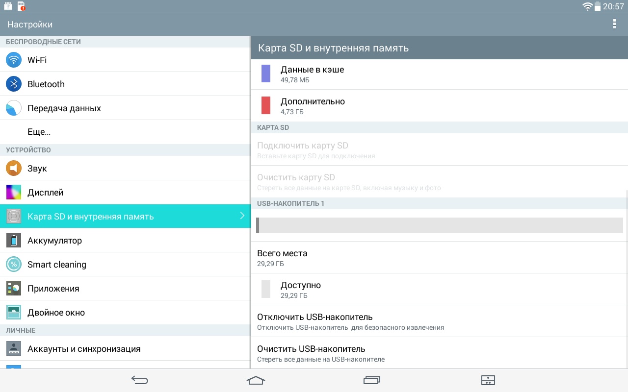 Расширение осуществляется как за счет карт microSD до 32 ГБ включительно, так и посредством подключения USB-накопителя.