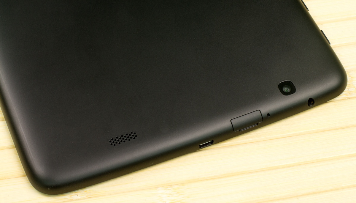 Планшет обладает двумя встроенными динамиками. Оба вынесены на тыльную панель.