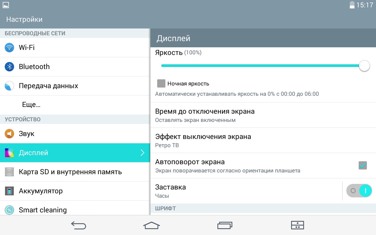 Среди других интересных особенностей в одноименном подменю предусмотрена возможность активации так называемой «ночной яркости», настройка тайм аута, выбора эффекта отключения экрана и многое другое. Отсюда же можно комбинировать уже упомянутые сенсорные кнопки.