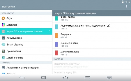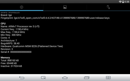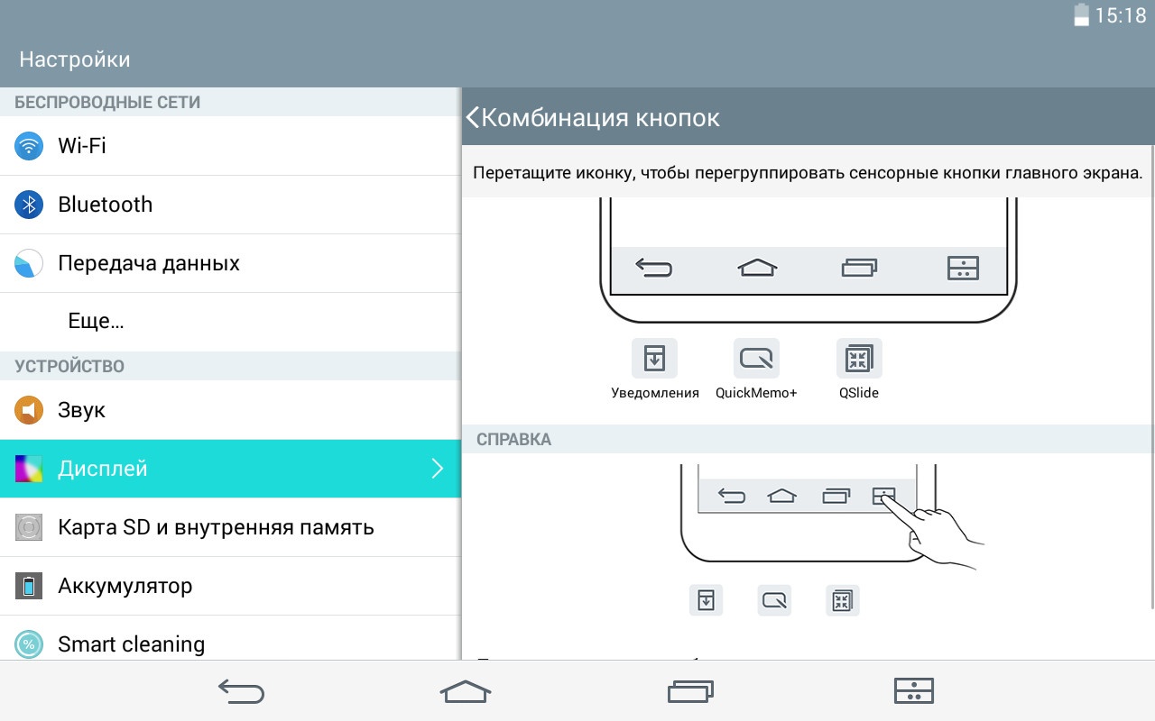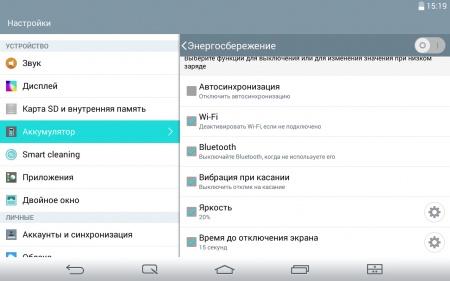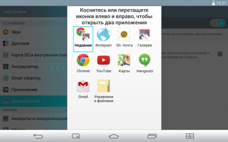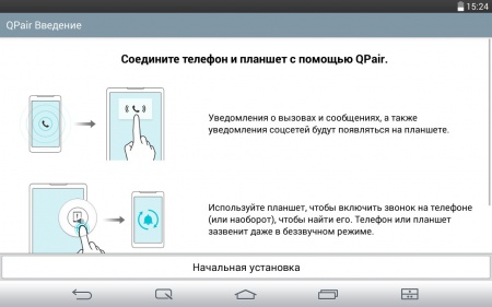 Что касается предустановленных приложений, интересным в LG G Pad 7.0 оказалось QPair для сопряжения планшета со смартфоном, QuickRemote для управления бытовой техникой, офисный пакет Polaris Office, а также фирменные Knock Code, KnockOn и «два окна».