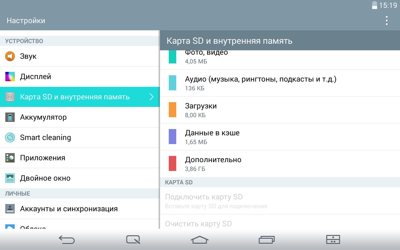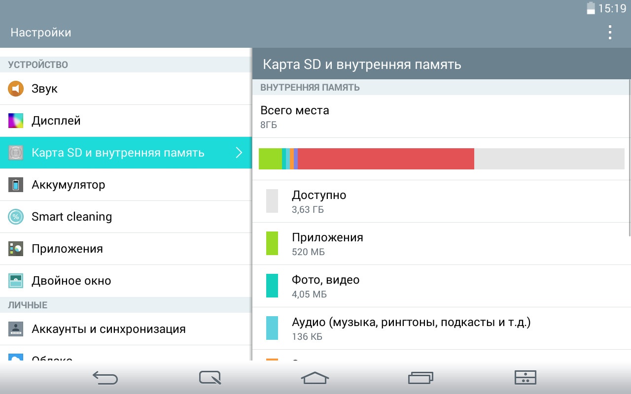 Официально заявлено о 8 ГБ встроенной памяти. Впрочем, пользователю доступно немногим меньше половины.