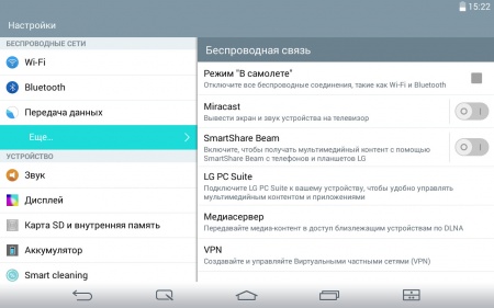 Помимо этого пользователь может работать с модулем Wi-Fi, поддерживающим технологию Wi-Fi Direct, GPS, Bluetooth 4.0, Miracast, VPN, SmartShare Beam и пр.