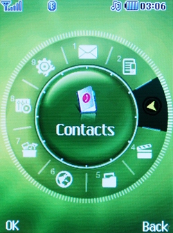 Меню KE600 не сильно отличается от предыдущих телефонов LG. Вендор всячески подчеркивает наличие колесика вместо джойстика. Это видно в рекламных брошюрах, следует из установленных функций и отображения главного меню. Последнее может быть представлено в виде матрицы 3х3 или в круговом виде. Каждый вид представлен в двух цветовых решениях: зеленом и синем. В обоих случаях для перемещения по меню колесико можно и крутить, и нажимать. Стиль подменю изменить нельзя, он представлен списком на черном фоне. При помощи прокрутки колесика или нажатий «вверх/вниз» можно перемещаться по опциям, левая и правая его стороны отвечают за перемещение между соседними пунктами главного меню. Большинство меню, подменю и опций пронумерованы, что позволяет использовать цифровые комбинации для быстрого поиска и выбора нужной функции. При создании сообщения на экране помещается 8 строк текста. Язык ввода можно изменить во время набора SMS. Выбор дополнительных символов открывается при нажатии на «*». При этом каждый символ пронумерован, что избавляет от утомительной прокрутки обширного списка дополнительных знаков. Если во время написания сообщения поступит звонок или пользователь случайно нажмет клавишу выхода в главное меню (красная кнопка), то набор можно будет продолжить с прерванного места. Контакты могут быть представлены в виде обычного списка и в виде списка с фотографией, при котором справа появляется присоединенное изображение. Каждая запись книги имеет фиксированное количество полей (3 номера, факс, группа, фото, мелодия, заметка), содержимое которых отображается в нижней части экрана для выделенного контакта. Выбранный контакт можно скопировать на SIM-карту или передать по Bluetooth. Данный список, как и списки звонков/сообщений в журнале звонков, не пронумерован, то есть для выбора какого-либо пункта придется пользоваться колесиком. Список групп состоит из четырех предустановленных, но его можно дополнить еще тремя собственными. На группу можно назначить картинку или звонок. Доступно шесть предустановленных профилей, которые нельзя дополнить своими. С изменением профиля меняются мелодии звонков, сообщений, загрузки и выключения телефона, а также звуки клавиатуры и закрытия/раскрытия слайдера. В меню инструментов собраны все дополнительные функции: будильник, календарь, калькулятор, заметки, калькулятор чаевых, секундомер, конвертер единиц, мировое время и настройки ссылок на любимые программы. Последний пункт также вызывается через нажатие «вправо» в дежурном режиме, на любую из его 9 ячеек можно назначить любое приложение, меню или подменю. Календарь не поддерживает события различных типов, однако создаваемому событию можно назначить повторения (ежедневно, еженедельно, ежемесячно, ежегодно), настроить время звукового оповещения (вовремя, за 15 минут, за полчаса, за час, за день). Всего в календарь можно поместить 100 событий, что достаточно мало. При наведении на дату показывается количество записей, назначенных на этот день, но не их содержимое. Остальные функции обычны и в отдельном описании не нуждаются. Файловый органайзер отображает следующие папки: видео, картинки, звуки, иное, приложения и игры. Изображения при этом представлены в виде пиктограмм. Из Java-приложений доступны две игры: гонки Формулы-1 и набор примитивных миниигр mini ga