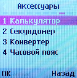 Экран телефона цветной (65K цветов в разрешении 128×128) и на удивление приятный (ведь речь идет о бюджетной модели). Цвета яркие, насыщенные, однако углы обзора небольшие.