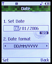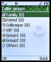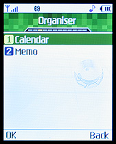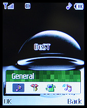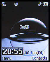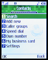 Меню представляет собой матрицу 3х4 с неплохо нарисованными иконками. Можно изменить цвет и стиль меню, обои, но не фон и иконки корневого меню. Таким образом, достигается несоответствие стилей: установленные по умолчанию обои хорошо гармонируют с корпусом, темы тоже можно подобрать, а вот основное меню не изменяется. Телефонная книга поддерживает группы. Каждой группе можно присвоить отдельную мелодию и пиктограмму. При добавлении нового пользователя можно сразу выбрать основной телефон (рабочий, домашний, мобильный), далее – группу, пиктограмму и (теоретически) картинку. Остальные поля доступны только в режиме правки из телефонной книги. Можно заполнить все 3 номера, добавить факс и адрес электронной почты.