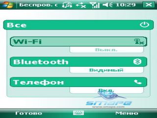 Проводная коммуникация осуществляется по USB2.0 через разъем miniUSB. Скорость передачи данных нареканий не вызывает. Mass Storage не поддерживается, для этого есть отдельная настройка. Беспроводная связь представлена Bluetooth 2.0 + EDR (Enhanced Data Rate) и Wi-Fi. Оба работают предельно корректно, нареканий нет. A2DP реализован отлично – звук громкий, качественный, связь не прерывается – на уровне HTC. Жаль только, что при разрыве соединения передача звука не останавливается, автоматически активируется встроенный динамик. Впрочем, это, к сожалению, типично для любого WM-коммуникатора.
