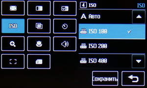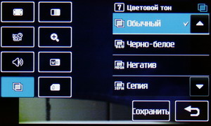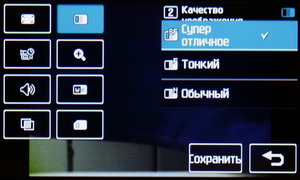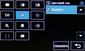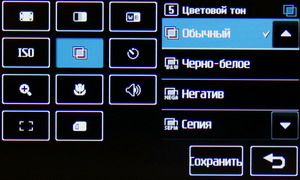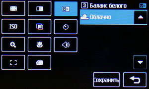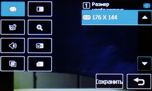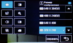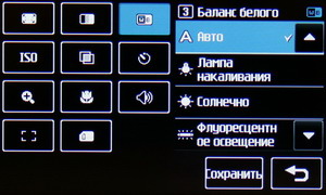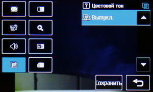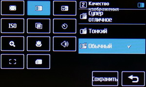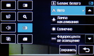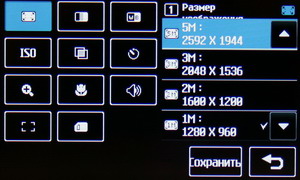 В меню настроек изменяется разрешение файла Jpeg, степень сжатия, баланс белого, ISO, цветовой тон и другие параметры: