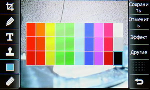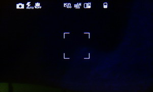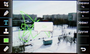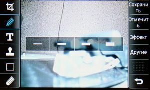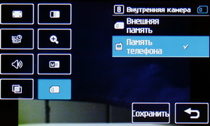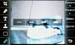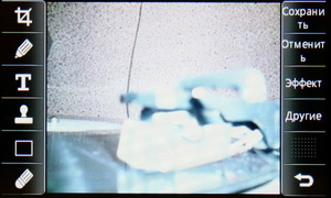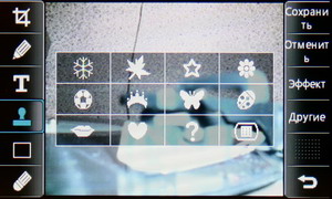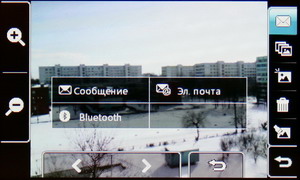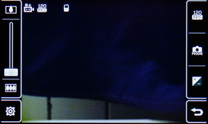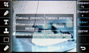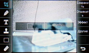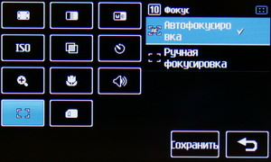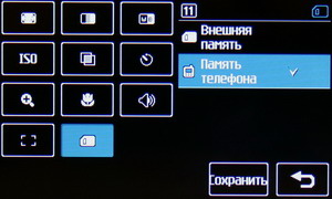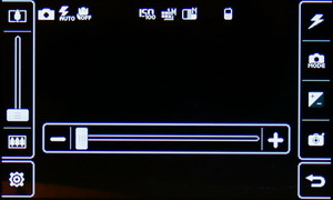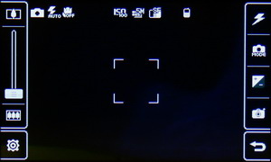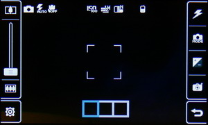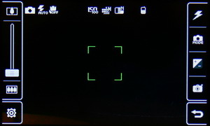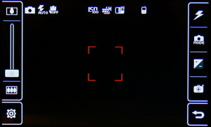 Затем появляется меню с иконками настроек и фокусировочной рамкой. Телефон держится горизонтально, все управление осуществляется за счет тачскрина: