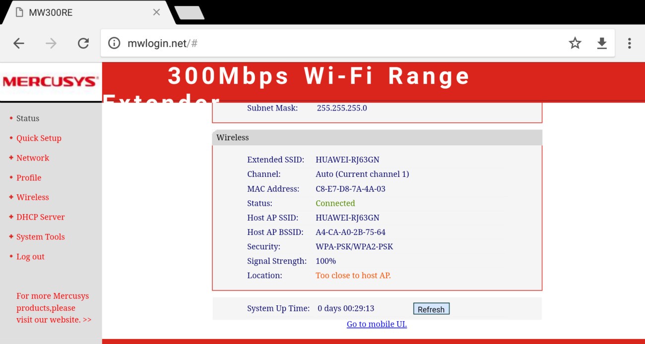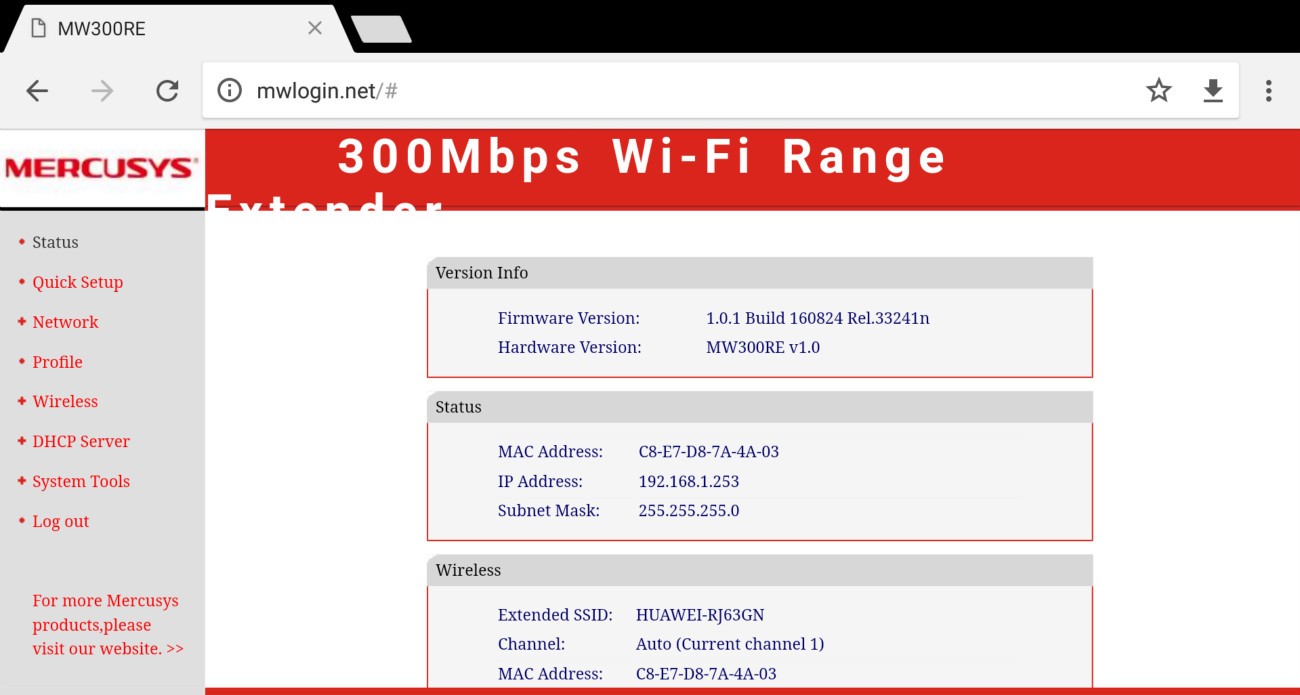 Обзор Mercusys MW300RE – бюджетный способ увеличить покрытие Wi-Fi сетиMercusys MW300RE – это устройство за 399 грн для быстрого расширения беспроводной сети Wi-Fi. Основная задача обозреваемого сетевого компонента – подключиться к роутеру и покрыть дублирующим сигналом большую площадь без изменения параметров подключения. Подробнее о возможностях повторителя читайте в обзоре. Возможности Скорость Wi-Fi в помещении обычно зависит от трех факторов: входного канала, роутера и сетевого адаптера на принимающем устройстве. Площадь покрытия ограничивается возможностями роутера и только. Покупка более мощного маршрутизатора не всегда оптимальный выход из ситуации. Это дорого. Более бюджетно вопрос решается, например, покупкой повторителя. Mercusys MW300RE создан специально для того, чтобы усиливать сигнал Wi-Fi IEEE 802.11n/g/b на скорости до 300 Мбит/с. Снаружи это видно по двум внешним складным антеннам с технологией MU-MIMO. Они белого цвета, как и остальной корпус. Конструкция из пластика, но это никак не повлияло на высокое качество сборки. Габариты – 99х53х38 мм. Первый – скрытая кнопка Reset. Она необходима для сброса настроек при переподключении повторителя от одного роутера к другому. Зажимаете ее на несколько секунд и мигание красного индикатора подтвердит сброс ранее установленных связей. Второй элемент – кнопка WPS. Она нажимается на «новом месте», пока MW300RE не найдет сеть. На маршрутизаторе нажимается аналогична кнопка WPS, чтобы гаджеты поняли, кто их пара. Эту процедуру лучше провести, когда устройства размещены рядом. Детальная настройка повторителя реализована через веб-интерфейс. Он доступен по адресу: http://mwlogin.net. Ниже на скриншотах показаны все доступные данные. Тест Процесс подключения Mercusys MW300RE в домашнюю сеть занял не более 5 минут. Главное следовать описанной выше последовательности. Точно измерить площадь, на которую увеличилось покрытие WI-Fi с максимальным уровнем сигнала сложно. Ранее в квартире на 90 квадратов использовали только один роутер TP-Link TL-WR940N. Он устанавливался на кухне, смежной с кабинетом, за которой следовал коридор, из которого далее был проход в 2 другие комнаты. Получалось, что балконы (там предусмотрены места для отдыха и чаепития) жилых комнат были лишены Wi-Fi, да и в спальных помещениях сигнал был слабым. Более наглядно производитель нарисовал очень схожую схему на коробке. Установка повторителя решила вопрос с покрытием беспроводной сетью всей локации. Не нужно было менять роутер или прокладывать дополнительный кабель. При перемещении между комнатами заметного разрыва соединения нет. И все это за 399 грн. Конкуренты Нужно признать, что Mercusys MW300RE не является единственной возможной кандидатурой на выполнение задачи по расширению домашней или офисной сети Wi-Fi. Основных конкурентов и цены на них мы публикуем ниже.