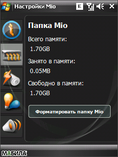 GPS–навигацияЧто уж точно удалось в реализации этого коммуникатора, так это — GPS–навигация. Поскольку производитель специализируется на выпуске GPS-навигаторов, Mio отличается замечательным исполнением своих навигационных функций. Спутники находит быстро, сигнал не теряет. Имея на борту привычный нам SiRF StarIII, коммуникатор прекрасно реализует заложенные в технологию возможности. Однако предустановленного ПО аппарат не имеет, поэтому софт придется устанавливать самостоятельно. При использовании IGO 8 претензий к аппарату не возникло никаких. Технология SiRFInstantFixII, заявленная в устройстве, таки работает. Суть ее заключается в том, что программа рассчитывает перемещение спутников относительно последнего контакта на три дня вперед, что избавляет вас от необходимости подкачки координат из Интернета. Память и передача данныхПамять в устройстве делится на три категории: оперативная — 64 МБ SDRAM, встроенная память платформы — 128 МБ ROM и подарочек от Mitac — встроенные 2048 МБ ROM (из которой под ваши нужды доступно 1.7 ГБ) что позволяет обойтись без приобретения карты памяти. Тем не менее, устройство поддержит любую MicroSD, к тому же с возможностью «горячей замены». Памяти достаточно для почти комфортной работы всех приложений, хоть и неизменное желание — иметь больше оперативной памяти всегда где-то рядом. Аппарат работает в трех диапазонах GSM-сетей и поддерживает технологии EDGEGPRS, WiFi и Bluetooth. Хотелось бы видеть в нем и поддержку 3G, однако это только увеличило бы его стоимость и не позволило бы конкурировать с более именитыми производителями.
