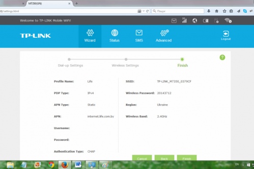 Клиентские устройства, максимальное количество которых может составлять 15 штук: планшетов, смартфонов, ноутбуков и т.д с ОС Windows 8/7/Vista/XP, OS X, Android, iOS и Windows Phone на борту, соединяются с роутером по Wi-Fi 802.11b/g/n, который работает в диапазоне 2.4 ГГц или 5 ГГц с максимальной скоростью подключения 300 Мбит/с. Замечу, что роутер раздает Wi-Fi на приличное расстояние. Так в пределах двухкомнатной квартиры сигнал есть в любом месте. TP-LINK M7350 может использоваться и в качестве сетевого хранилища. Доступ к данным хранящимся на карте памяти microSD максимальным объёмом до 32 ГБ обеспечивается как по сети, так и при локальном подключении через USB. В первом случае файлы будут доступны из браузера всем Wi-Fi пользователям. Таким образом, например, у вас будет возможность посмотреть фильм даже на устройстве с небольшой памятью. Принцип работы и интерфейсВсе, что необходимо для начала работы TP-LINK M7350 - вставить в него SIM-карту и нажать кнопку питания. После этого гаджет автоматически определит оператора и соединиться с сетью. Клиентское устройство к роутеру по Wi-Fi подсоединить не намного сложнее. Для это следует выбрать название сети в списке и ввести пароль или же использовать функцию WPS, введя одноразовый пароль WPS или активировав ее в web-интерфейсе, в виду отсутствия физической кнопки на корпусе. Альтернативным способом выхода в Интернет через TP-LINK M7350 является проводное подключение к компьютеру через USB. Чем удобен TP-LINK M7350 в эксплуатации, так это двумя возможными способами управления. Первый – через встроенное меню, что будет наиболее удобно новичкам. Второй – через веб-интерефейс, доступный по адресу http://tplinkmifi.net или 192.168.0.1 и предоставляющий значительно больше возможностей пользователю по части настроек. Логин и пароль по умолчанию - admin. Так, например, через встроенное «Mеню», которое, кстати, доступно только на английском языке, пользователь может лишь посмотреть пароль Wi-Fi, выбрать полосу частот Wi-Fi, переключиться между типом сотовой сети и включить/отключить передачу данных в роуминге. В свою очередь в веб-интерфейсе можно изменить имя сети, пароль Wi-Fi и WPS-код, установить лимит на передачу данных и день начала расчетного периода, проверить и установить обновление прошивки, отследить общий объем принятых и переданных данных, а также длительности работы, просмотреть список подключенных к Wi-Fi устройств. Кроме того, здесь же пользователю предоставляется возможность работы с SMS-сообщениями, выбора режима установления соединения (автоматический или ручной), работа в роуминге, выбор сети (авто, 2G, 3G или 4G) и оператора, предусмотрен фильтр MAC-адресов, активации WPS с PIN-кодом и многое другое. ВыводыЧто ж, одно из главных преимуществ 115-долларового беспроводного мобильного роутера TP-LINK M7350 на фоне многочисленных конкурентов - поддержка работы со всеми существующими нынче сетями сотовой святи и при этом не залоченность ни под одного из мобильных операторов. Устройство может также похвастаться компактным корпусом, поддержкой одновременной работы 15-ти пользовательских устройств и хорошим временим автономной работы. Он максимально легок в настройке и управлении, а потому отлично подойдет даже новичкам, которым повседневно нужен доступ к Интернету вне дома. Стоит отметить также наличие слота для карт памяти и дисплея для отслеживания трафика непосредственно на самом марш
