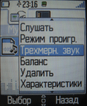 Экран:Традиционно для этой марки телефонов экран занимает почти всю верхнюю половину передней панели. Качество картинки на высоте - четкость, яркость и контрастность изображения просто поражают. Нет проблем и с зернистостью, расстояние между пикселями практически не заметное, а потому картинка смотрится весьма натурально. Пиксельный размер экрана составил 176*220 точек, а количество передаваемых цветов и оттенков – 262 тысячи. В режиме ожидания информация на дисплее размещается подобным образом: в самой верхней части экрана традиционно находятся иконки сети и батареи, а самом низу – подписи к софт-клавишам. Названия оператора и текущее время могут менять свое положение в зависимости от выбранной темы оформления. Звук и вибра:А вот на звуке стоит остановиться подробней. Так как телефон анонсирован в первую очередь на музыкальную направленность, то и качество звука здесь соответствующее. Стереодинамики расположенные на верхнем и нижнем торце устройства создают объемное звучание, а ряд клавиш управления плеером или радиоприемником превращают телефон в настоящий музыкальный центр. Звук, издаваемый стереодинамиками достаточно громкий, а его четкость и насыщенность никого не оставят равнодушными. Голосовой динамик также не разочаровал, собеседника слышно отлично, каких либо помех или сторонних шумов при разговоре не наблюдается, только вот громкости иногда немного не хватает. Вибровызов по силе выше среднего, он без проблем ощущается даже из карманов внешней одежды.