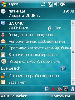 Коммуникационные и офисные приложенияТеперь, по сути, о самом главном. Выше мы уже упоминали о сверх оснащенности аппарата. Разложим теперь, все по полочках. Как мы упоминали выше, устройство оснащено модулем MMS и клиентом электронной почты. И то, и другое имеет полноценный формат работы, то есть возможность поддержки и форматирования вложений здесь не чужды. GPRS и EDGE представлены здесь с десятым классом скоростей. Поддерживает устройство и модуль Bluetooth, причем в Asus P750 Bluetooth имеет высокую 2.0 скорость, а также может синхронизироваться с компьютером посредством кабеля mini-USB, хотя необходимое ПО все же придется использовать. За мобильный Интернет в устройстве отвечают браузеры Internet Explorer Mobile / PocketIE. Венчает этот арсенал модуль Wi-Fi. Относительно офисных приложений, как мы уже упоминали, в Asus P750 представлены аналоги представителей семейства Office – приложения Word Mobile, Excel Mobile, PowerPoint Mobile. Документы в этих приложениях возможно создавать, редактировать или же просто просматривать. Как говориться на любой вкус. Все это неплохо «уживается» под управлением процессора Intel XScale PXA270M с тактовой частотой 520 МГц. Камера и возможности проигрывателяВ Asus P750 две камеры – VGA (640х480 точек), предназначена для видеозвонков – функции, которая пока не сильно востребована пользователями, и основной 3-х мегапиксельной. С настройками здесь все достаточно стандартно: выбор размера кадра, серия, регулировка цветов. С настроек видеокамеры стоит добавить возможность записи видео как в формате МР4 так и в 3GP. В подпункте меню «Воспроизведения» находится полноценный проигрыватель Windows media, которому свойственны все настройки и возможности компьютерного проигрывателя.