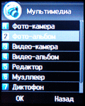 Помимо этих кнопок, на правой части корпуса расположились еще клавиша-качелька регулировки громкости и кнопка быстрого доступа к камере. Они органично вписываются в общий дизайн телефона, и немного выступают над корпусом, а следовательно проблем с их нажатием не возникает. Камера:В телефоне установлена весьма неплохая камера, но по качеству снимков она уступает многим более именитым аналогам. Если с четкостью проблем не возникает, то по цветопередаче и шумам она заметно отстает от подобных моделей среднего ценового диапазона. Но вот при съемке видеороликов, камера показала неплохие результаты, и даже опередила те аппараты, которым уступает по качеству фотографий. А вот возможность съемки видео неограниченного размера понравится многим, тем более что есть возможность сохранять информацию напрямую на карту памяти, следовательно, длина видеозаписи может составить несколько часов. Максимальный размер видеокадра 144*176 пикселей, а фото – 1024*1280. При фотографировании можно применять ставшие стандартом различные эффекты, вставлять рамочки, устанавливать автоспуск и прочее.