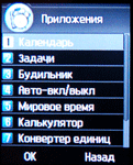 Передача данных:Для общения с внешним миром в телефоне предусмотрен ИК-порт и разъем для подключения USB кабеля. К сожалению, Bluetooth который имеется в телефоне, версии 1.0 и предназначен только для подключения беспроводной гарнитуры, так что картинки или музыку через него передать не получится. При подключении телефона к компьютеру через кабель, аппарат предлагает две возможности его дальнейшей работы, работу в виде Flash накопителя, или стандартное подключение с эмуляцией СОМ порта. Что интересно, для этого не требуется установки драйверов, а значит, телефон отлично справляется с ролью переносной «флешки».