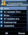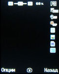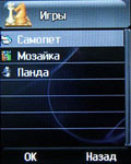 Эргономика телефона заслуживает высокой оценки. Стоит также отметить, что из-за своих размеров аппарат скорее подойдет женщинам, чем мужчинам. Дисплей может похвастаться хорошей цветопередачей и малозаметным зерном. Его физические размеры – 4,5 см по диагонали при разрешении 176х220 точек. Меню может отображаться двумя способами: иконки в виде матрицы 3х3, под которой отображается увеличенное изображение активного пункта, либо в виле карусели, когда каждый выбранный раздел представлен иконкой на весь экран. Ускорить работу с меню позволяют цифровые последовательности. Кроме того, для перемещения между подпунктами можно использовать и традиционный способ – горизонтальные отклонения навигационной клавиши.
