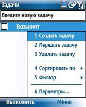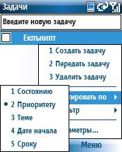 Этот подпункт меню дает пользователю возможность планировать свой рабочий день или же запланировать мероприятие на будущее. Доступна сортировка задач по приоритету, состоянию, теме, дате начала и т.д. В параметрах этого подпункта дана возможность устанавливать напоминания для новых элементов и др.