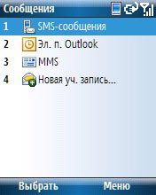 Зайдя в этот подпункт, пользователь получает возможность работы с короткими текстовыми сообщениями и мультимедийными сообщениями MMS. Здесь же пользователь может работать с полноценным клиентом электронной почты и все настройки к этим трем приложениям.